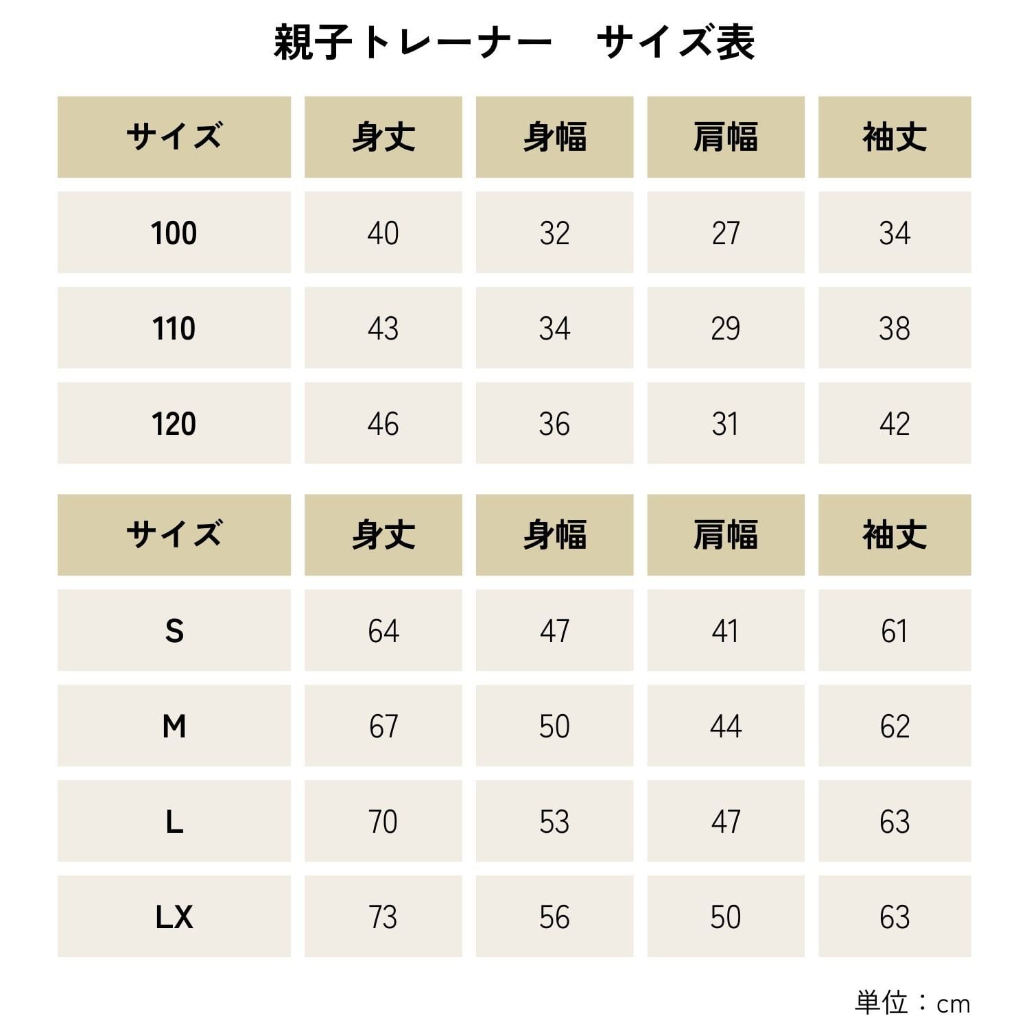*サイズの詳細は商品画像の「親子トレーナーサイズ表」をご確認ください。