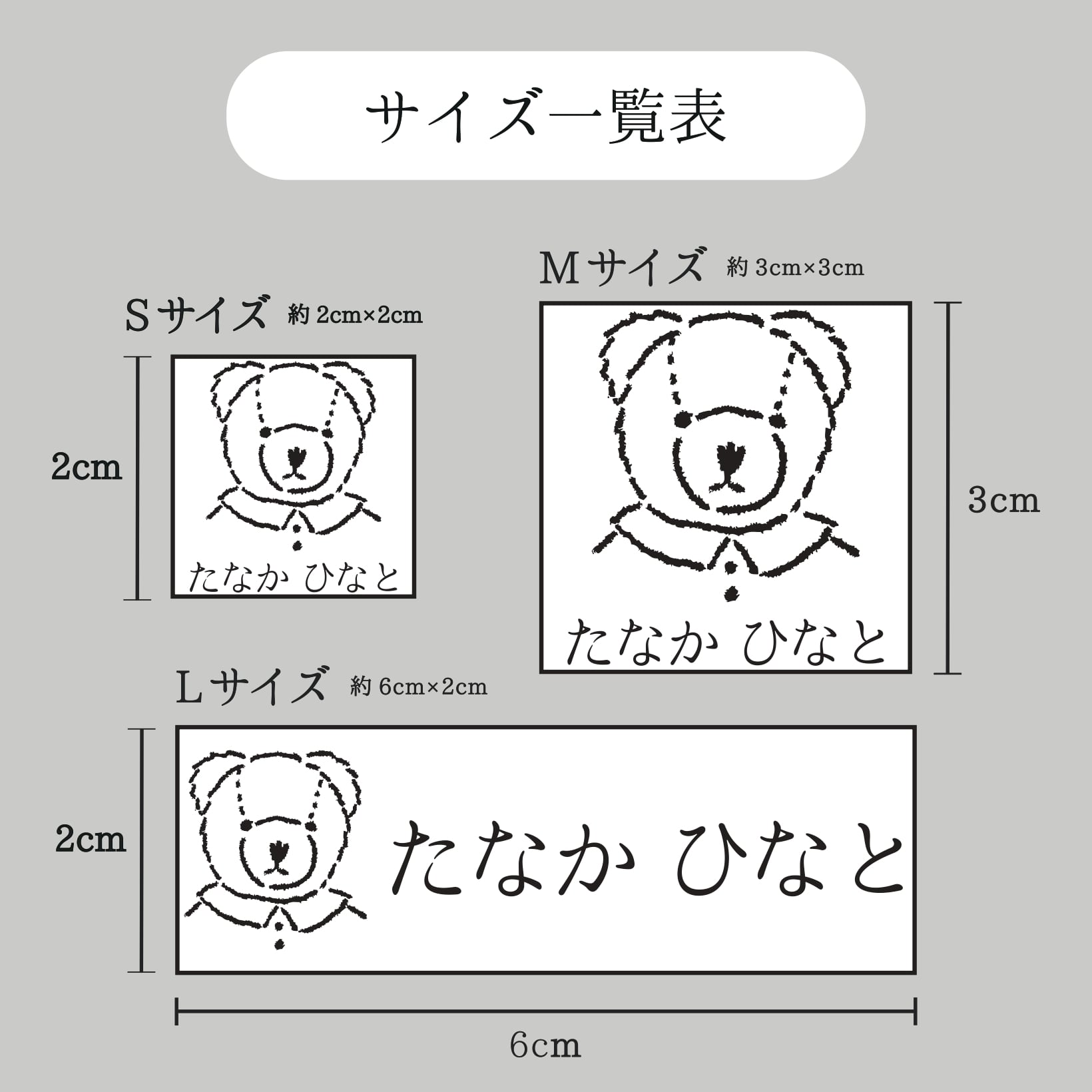 *実際の仕上がりサイズは、イラスト や お名前の文字数 によって、異なります。