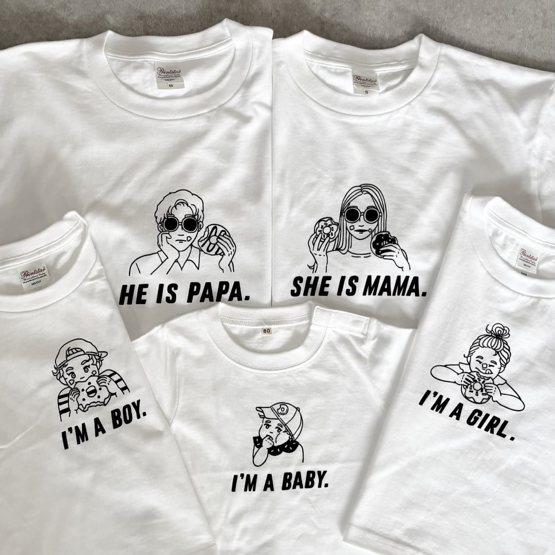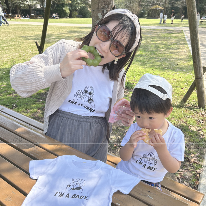 ドーナツをモチーフにした、思わず笑顔になる「親子Tシャツ」です。
